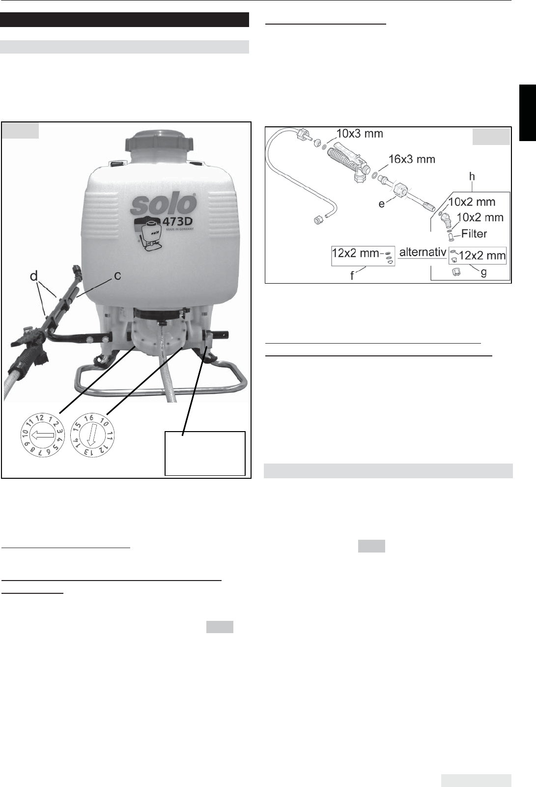 Werkseitig ist die Rückenspritze zur linksseitigen
