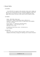 2. Specifications 2.1 Product Item Description Size 4 3 x 3 6 x 1 2 mm CR2450 Lithium Battery (3V, 1ea) Battery 2.4 ~ 3.3Vdc(condtion : In active status) Display EPD PANEL display (Graphic type) Information display Price, Unit, Discount, etc. Communication IEEE802.15.4 2.4GHz ISM Band (Range “2405~2480MHz”) Distance Radius 20m (Indoor, Line of Sight) Operation Temp. -25 ~ 40 ℃ Etc. No additional anti-theft locking structure : Rail Mounted only 2.2 Radio (RF) 2.2.