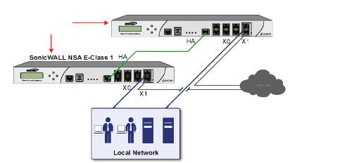 - For network installations with two SonicWALL NSA E-Series appliances configured as a stateful synchronized pair for redundant high-availability networking.