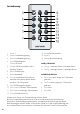 Télécommande: 1 Alarm 1 13 Tuning Recherche de stations - 2 Volume Réglage du volume - 14 Alarm 2 3 Volume Réglage du volume + 15 Snooze Arrêt momentané 4 Play Lecture CD / 5 Pause Pause CD en mode CD-MP3 Standby Pour allumer l’appareil et 12 Tuning + Dossier suivant/album suivant le mettre en veille 13 Tuning - Dossier précédent/album précédent 6 Menu Réglages 7 Mode Mode de fonctionnement en mode radio DAB 8 Favorite Appuyez plusieurs fois pour 12 Quick Scan Si appuyé pendant plu
