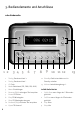 Fernbedienung: 1 Alarm 1 13 Tuning Sendersuchlauf - 2 Volume Lautstärkeregelung - 14 Alarm 2 3 Volume Lautstärkeregelung + 15 Snooze Stummschaltung 4 Play CD Wiedergabe / 5 Pause CD Pause im MP3-CD-Betrieb Standby Gerät einschalten und in 12 Tuning + nächster Ordner / nächstes Album Standby schalten 13 Tuning - vorheriger Ordner / vorheriges Album 6 Menu Einstellungen 7 Mode Betriebsart im DAB Radio-Betrieb 8 Favorite wiederholtes Drücken um 12 Quick Scan wenn länger als 2 Sekunden
