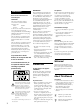Additional Information General Specifications Power requirements System MiniDisc digital audio system Disc MiniDisc Laser Semiconductor laser (λ = 780 nm) Emission duration: continuous Laser output Less than 44.6 µW* * This output is the value measured at a distance of 200 mm from the objective lens surface on the Optical Pick-up Block with 7 mm aperture. Power consumption European models: 15W USA models: 14W Dimensions (approx.) (w/h/d) incl.