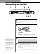 Recording on MDs Recording on MDs If “Cannot Copy” appears in the display Notes on Recording If “Protected” appears in the display The MD is record-protected. Close the slot to record on the disc (see “To protect an MD against accidental erasure” on page 7). If “Din Unlock” flashes in the display • The digital program source which you set with INPUT in Step 4 on page 6, is not connected. To continue, connect the program source properly. • The program source is not on. Turn on the program source.