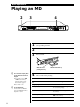 Playing MDs Disc name Using the Display Z You can use the display to check disc and track information such as the total track number, total playing time of the tracks, remaining recordable time of the disc and disc name. Total number of tracks Total disc playing time 6 DISPLAY SCROLL To label a recordable disc and its tracks, see “Labeling Recordings” on page 26.