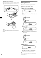 Attaching the front panel Place hole A of the front panel onto the spindle B on the unit, then lightly push the left side in. Setting the clock The clock uses a 24-hour digital indication. Example: To set the clock to 10:08 A 1 Press (DSPL) for 2 seconds. B The hour indication flashes. 1 Press the volume +/– button to set the hour. to go forward x to go back 2 Press (SEL). Note Do not put anything on the inner surface of the front panel. The minute indication flashes.
