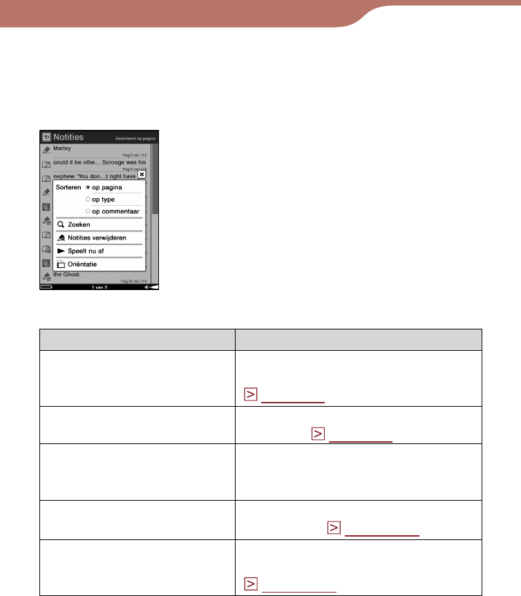 Het optiemenu van de lijst "Notities" gebruiken