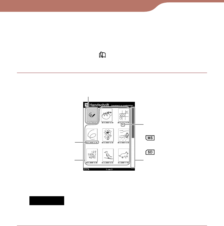 In de lijst "Handschrift" is alleen de weergave "Thumbnail"
