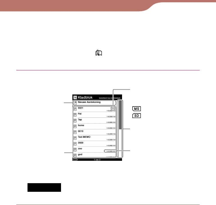 - Een notitie selecteren ("Notitie maken/bewerken")