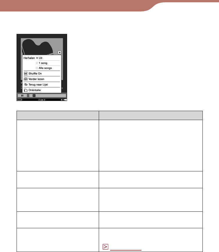 Optiemenu van het afspeelscherm