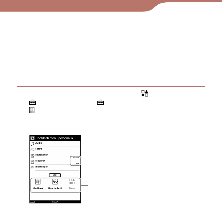 "Handschrift" en "Kladblok" in het menu Hoofdscherm