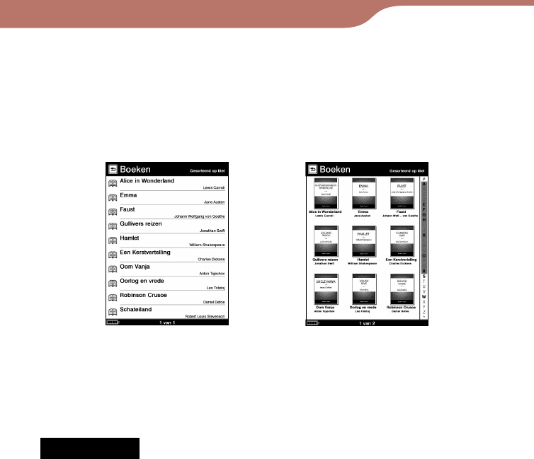 In de lijst "Boeken" en de lijst "Audio" kan de Thumbnail alleen