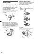 Attaching the front panel Getting Started Place the hole a in the front panel onto the spindle b on the unit as illustrated, then push the left side in. Resetting the unit a b Before operating the unit for the first time or after replacing the car battery, you must reset the unit. Remove the front pannel and press the reset button with a pointed object, such as a ballpoint pen. Reset button µ Note Pressing the reset button will erase the clock setting and some memorised functions.
