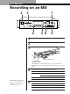 Recording on MDs Recording on MDs If “Cannot Copy” appears in the display Notes on Recording If “Protected” appears in the display The MD is record-protected. Close the slot to record on the disc (see “To protect an MD against accidental erasure” on page 7). If “Din Unlock” flashes in the display • The digital program source which you set with INPUT in Step 4 on page 6, is not connected. To continue, connect the program source properly. • The program source is not on. Turn on the program source.