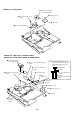 LCD MODULE, “BUTTON, CONTROL”, “SERVICE ASSY, UPPER PANEL” • MZ-R90 1 five screws (1.4) 2 LCD module 3 control button 4 upper panel service assy • MZ-R91 1 five tapping screws (1.7) 2 LCD module 3 control button Note: The control buttons are stuck with strong adhesive sheets. As the control buttons are very fragile, do not peel them off forcibly.