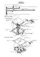 MAIN BOARD, “CASE ASSY, BATTERY” 2 flexible board (LCD module) (CN801) 2 flexible board (over write head) (CN601) 1 Remove the solder of joint. 3 four toothed lock screws (M1.4) 1 Remove the solder of battery terminal (minus). 4 6 main board 8 batter case assy 1 Remove the solder of battery terminal (plus). 2 motor flexible board (CN602) 5 flexible board (optical pick-up) (CN501) Note: Before removing the flexible board from CN501, be sure to solder the flexible board.