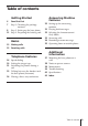 Table of contents Getting Started 6 7 Read this first Step 1: Checking the package contents 8 Step 2: Setting up the base phone 11 Step 3: Preparing the battery pack Basics 13 Making calls 15 Receiving calls Telephone Features 16 Speed dialing 19 Setting the ringer type 21 Switching the phones during a call 23 Talking between the handset and the base phone (Intercom) 24 Having a three-way conference Answering Machine Features 25 Setting up the answering machine 31 Playing back messages 33 Selecting the
