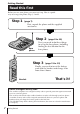 Step 3 Preparing the battery pack Insert the battery pack into the handset, then place the handset on the base phone. 2 3 4 Slide open the battery compartment lid of the handset. Getting Started 1 Insert the battery pack (with contacts facing down) into the battery compartment. Close the battery compartment lid. Place the handset on the base phone. The CHARGE lamp lights up when the handset is properly seated on the charge terminals of the base phone.