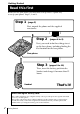 Step 3 Preparing the battery pack Charge the battery pack for more than 12 hours before you start using your phone. compartment lid of the handset. 2 Connect the battery connector BP-T18 with correct polarity (black wire goes on left side and red wire goes on right). Getting Started 1 Slide open the battery Red Black 3 Close the battery compartment lid. 4 Place the handset on the base phone. The CHARGE lamp lights up when the handset is properly seated on the charge terminals of the base phone.