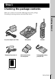 Getting Started Read this first Before you use your phone, you must first set it up. Here’s a quick way to set up your phone: Steps 1, 2 and 3. Step 1 (page 5) First, unpack the phone and the supplied accessories. Step 2 (pages 6 to 8) Next, you need to do three things to set up the base phone, including finding the best location for the base phone. Base phone Step 3 (pages 9 to 10) Then, insert the battery pack into the handset and charge it for more than 12 hours.