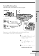 Identifying the parts (continued) Base Phone 1 qd 2 3 4 5 6 7 8 9 0 qa qs qf 1 Message counter (p. 35) Indicate the number of new messages recorded. “A” appears in the announcement only mode. “FL” appears when there is no space to record messages. qg qh qj qk ql w; wa ws wd wf wg wh wj 8 IN USE lamp (p. 15, 17, 23) Lights when one of the phones is in use. 9 CHARGE lamp (p. 9) Lights while the battery is being charged. 2 TIME/SET button (p.