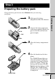 Notes on power sources On battery pack On safety • Store the battery pack at a temperature between 41°F (5°C) and 95°F (35°C) for best performance. • Do not unnaturally bend or crimp the cord, and do not place heavy objects on it. • If you do not use the handset for a long period of time, remove the battery pack after charging for more than 12 hours. This maintains battery life. • If the cord or plug is damaged, do not continue to use it. Contact your local Sony dealer for replacement.
