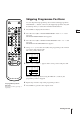Checking the Timer Settings You can display the list of the timer settings which you preset. Press TIMER ON SCREEN. The PROGRAMME LIST appears. ON TIMER MENU SLEEP OK VIDEO Plus+ 1 2 3 4 5 6 7 8 9 ÷ 0 ONCE PROGRAMME LIST PDC DATE START 6 FRI 2 0 : 1 5 7 SAT 8 : 30 MON-SAT 2 3 : 0 0 EVERY SUN 9 : 5 5 –– –– : –– –– –– : –– Se l ec t 20 : 00 4 .