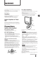 Additional Information Troubleshooting Function TV reception Problems Possible causes and remedies No picture (screen is • The mains lead is disconnected. dark), no sound / Connect the mains lead. • The video TV is switched off. / Press ;, PROGR +/– or programme number on the Remote Commander, or PROGR +/– on the video TV. GB Good picture but no sound • The headphones are connected to 2 jack. / Disconnect the headphones. • The ¤ is displayed on the screen. / Press ¤. • Press Á +/–.