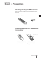 Getting Started Step 1 — Preparation Checking the Supplied Accessories When you have taken everything out of the carton, check that you have these items: • Remote Commander • Two R6 (size AA) batteries GB Inserting Batteries into the Remote Commander Close the cover. Turn the Commander over, and remove the cover. Check the polarities and position two R6 batteries correctly.