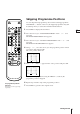 3 Using + or – , select the setting you want and press OK. For the effect of each setting, see the table below. The selected setting is stored. Effect of each setting ON TIMER MENU SLEEP OK VIDEO Plus+ 1 2 3 4 5 6 7 8 9 ONCE Setting Picture effect PICTURE CONTROL The adjusted picture control levels are stored. (See “Adjusting the picture displayed on the screen.”) STANDARD More contrast MILD Less contrast MOVIE Darker e.g.