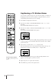 Muting the Sound 1 2 3 4 5 6 7 8 9 -/-- 0 PROGR ON TIMER SLEEP Press ¤. The ¤ indicator appears and stays on the screen. To resume normal sound, press ¤ again or Á +. Displaying the On-screen Information Press e to display the following on-screen information. To have the programme number and caption stay on the screen, press e again. To make the indications disappear, press e until no indications are displayed on the screen.