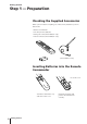 Getting Started Step 1 — Preparation Checking the Supplied Accessories When you have taken everything out of the carton, check that you have these items: • • • • Remote Commander Two R6 (size AA) batteries Monopole aerial (KV-V1430K/P only) Aerial connector (KV-V1430K/P only) (KV-V1430K/P only) Inserting Batteries into the Remote Commander Close the cover. Turn the Commander over, and remove the cover. 4 Getting Started Check the polarities and position two R6 batteries correctly.