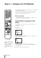 Step 3 — Tuning in to TV Stations 1 2 3 4 5 6 7 8 9 -/-- 0 Before you begin • If the u lamp on the video TV is lit in red, press ;, PROGR +/– or a number button on the Remote Commander. PROGR ON TIMER Selecting the Language on the Menu SLEEP QUICK TIMER REC COUNTER RESET REW PLAY STOP PAUSE TIMER ON SCREEN You should preset the channels (up to 60 channels) by choosing either the automatic or manual method.