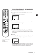 Presetting Channels Automatically 1 Press MENU to display the main menu. 1 2 3 4 5 6 7 8 9 -/-- 0 press OK. The PROGRAMME PRESET menu appears. GB PROGRAMME PRESET AUTO PROGRAMME MANUAL PROGRAMME PROGR ON TIMER 2 Move the cursor (z) to “PROGRAMME PRESET” with + ◊ or – √ and Se l ec t a nd p r e s s OK SLEEP 3 Move the cursor (z) to “AUTO PROGRAMME” with + ◊ or – √ and press OK. The AUTO PROGRAMME menu appears.