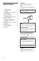 Introduction Table of Contents Thank you for choosing this Sony product. Before operating the TV, please read this manual thoroughly and retain it for future reference. Note • Images and illustrations used in the Setup Guide and this manual are for reference only and may differ from the actual product. IMPORTANT NOTICE . . . . . . . . . . . . . . . . 2 Safety Information . . . . . . . . . . . . . . . . . 3 Precautions . . . . . . . . . . . . . . . . . . . . . . . 5 Protecting the TV Screen (OLED TV) . .