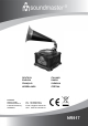 Hersteller Wörlein GmbH Gewerbestrasse 12 D 90556 Cadolzburg GERMANY DEUTSCH ITALIANO ENGLISH DANSK FRANÇAIS SVENSKA NEDERLANDS ČEŠTINA Tel.: +49 9103/71670 Fax.: +49 9103/716712 Email. info@soundmaster.de Web: www.soundmaster.