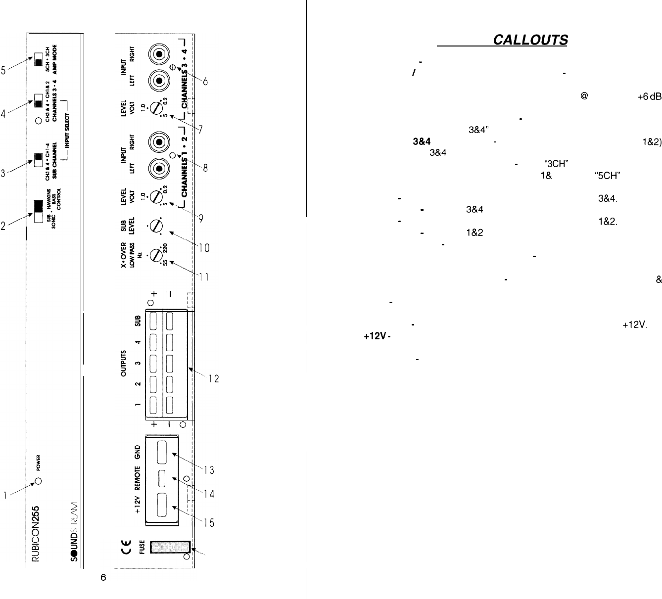 fading bass control, “CH 3&4” for front to rear fading bass control.