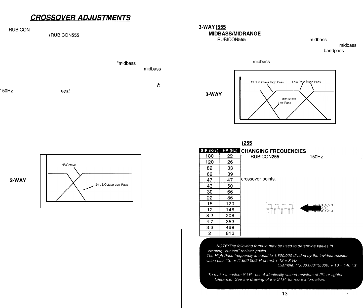 independently variable from 50 to 500 Hz at 12 dB/Octave (Removable SIP