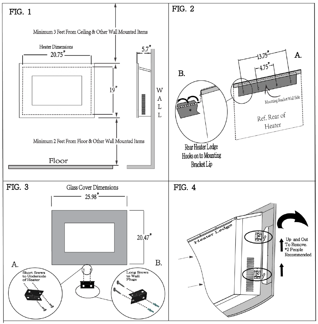 underside and the wall. Mark the 2 remaining wall plug locations accordingly (Ref. Fig. 3A and 3B).