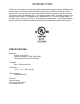 TABLE OF CONTENTS Topic Page(s) Introduction 3 Specifications 3 Safety Information 4-5 Fireplace Placement 6 Fireplace Operation 7 Troubleshooting and Fireplace Maintenance 8 Warranty 9-10 Warranty Claim Contact Information 11 *Contents in the box: 1. Infrared Fireplace heater 2. Instruction manual 3.