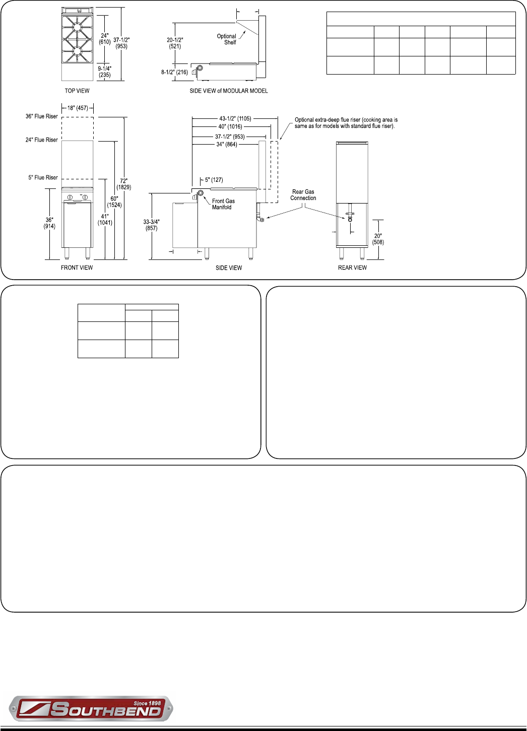 adjacent sectional unit(s), and a 1" rear gas connection with a male