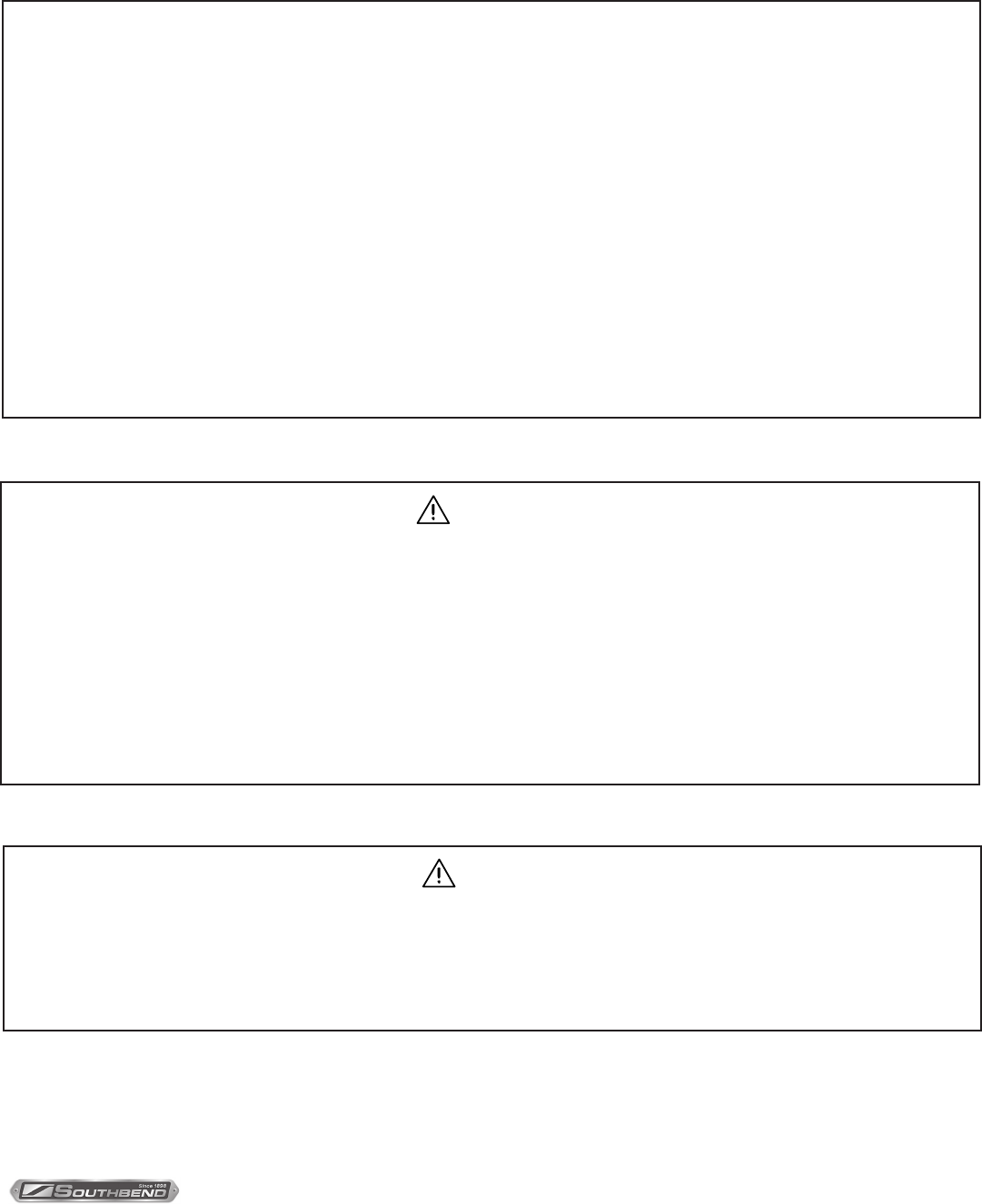 Southbend reserves the right to change specications and product design without notice. Such revisions do not entitle