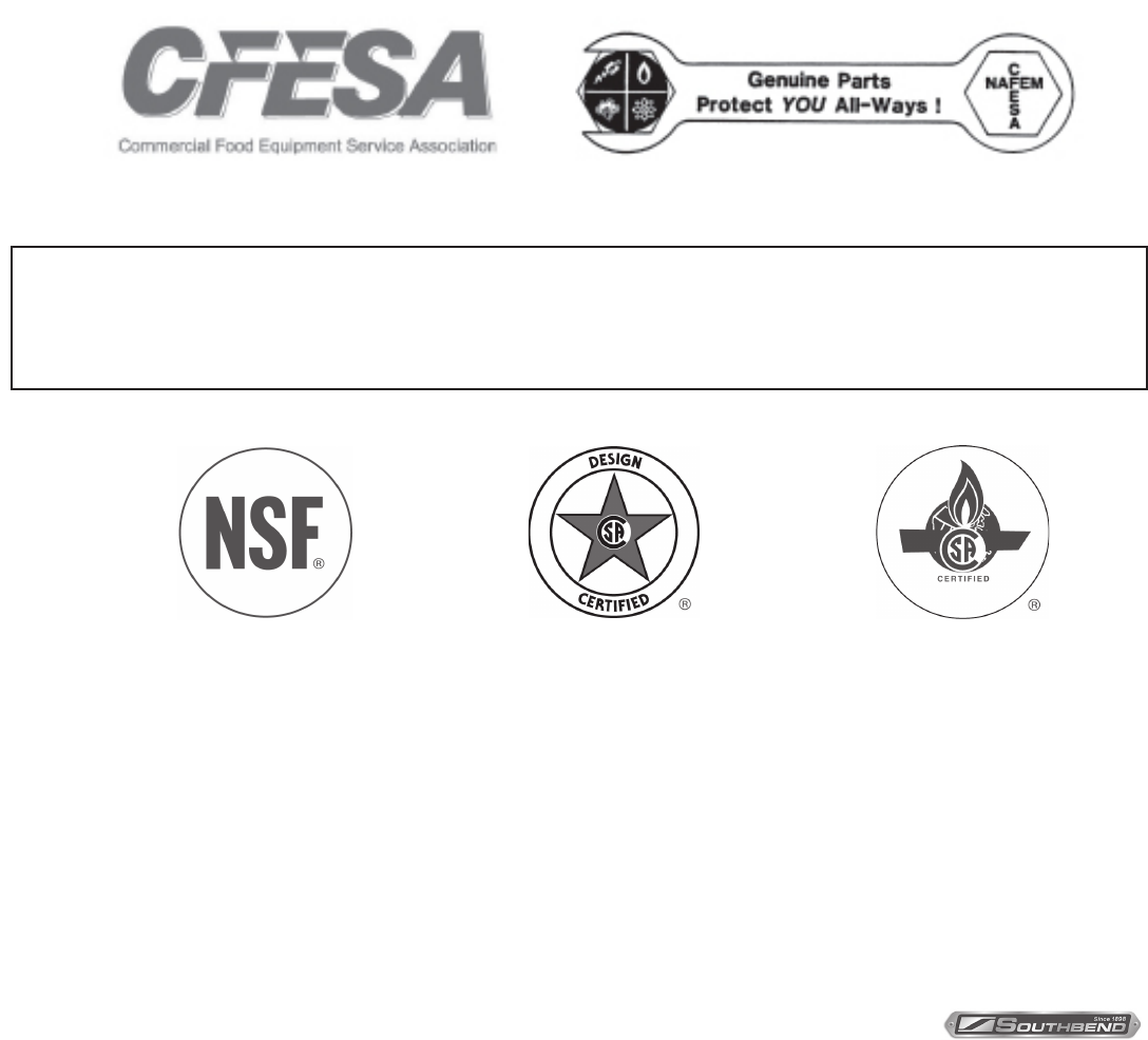 When service is needed, contact a Southbend Authorized Service Agency, or your dealer. To avoid confusion, always