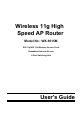 Wireless 11g High Speed AP Router Model No.: WX-6615M 802.11g/802.
