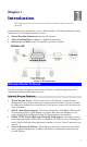 Introduction Configuration & Management • Easy Setup. Use your WEB browser from anywhere on the LAN or WLAN for configuration. • Configuration File Upload/Download. Save (download) the configuration data from the Wireless Router to your PC, and restore (upload) a previously-saved configuration file to the Wireless Router. • Remote Management. The Wireless Router can be managed from any PC on your LAN. And, if the Internet connection exists, it can also (optionally) be configured via the Internet.