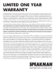 THE ABOVE LIMITED ONE-YEAR WARRANTY CONTAINS THE ONLY WARRANTY MADE BY SPEAKMAN. ANY AND ALL