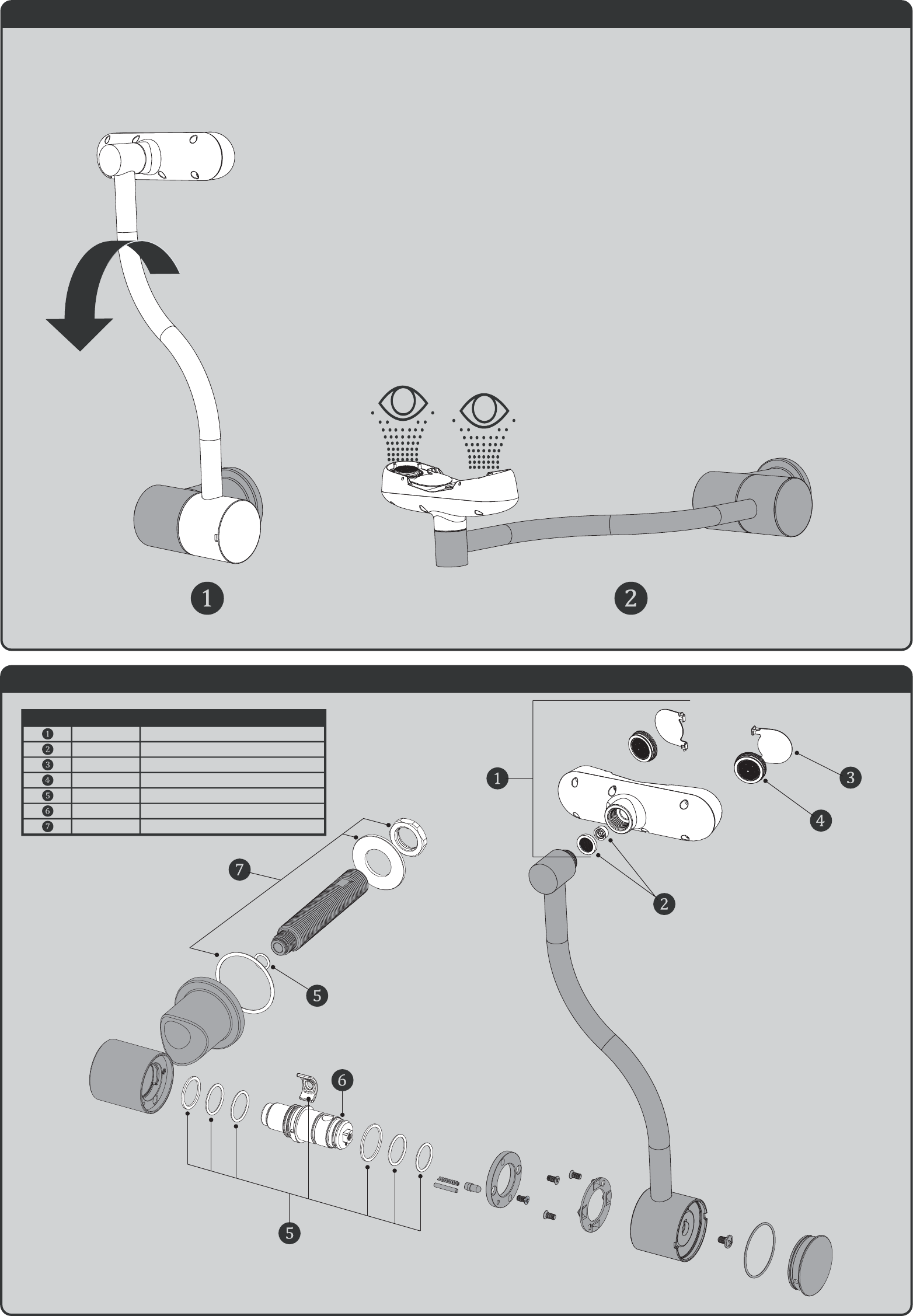 The eye wash is activated by pulling spray heads downward 90° over the sink basin. Once the unit is activated, water will discharge from the spray outlets until the eye wash spray heads are manually pushed back