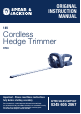 ORIGINAL INSTRUCTION MANUAL 18V Cordless Hedge Trimmer HT04 Important - Please read these instructions fully before starting assembly These instructions contain important information that will help you get the best from your trimmer, ensuring it is assembled correctly and safely.