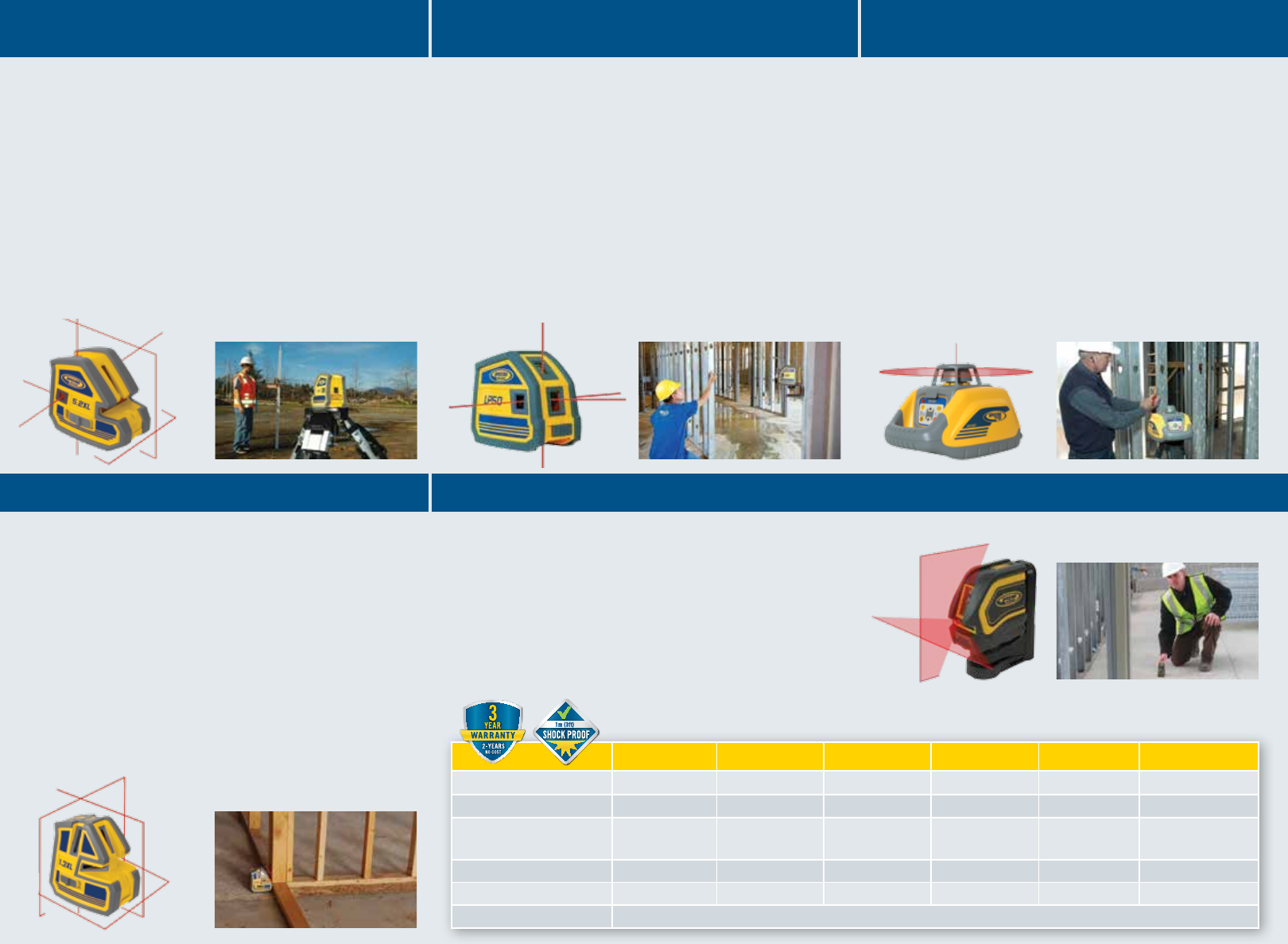 • Durable – toughest lasers in the business... 3-foot (1 m) drop on