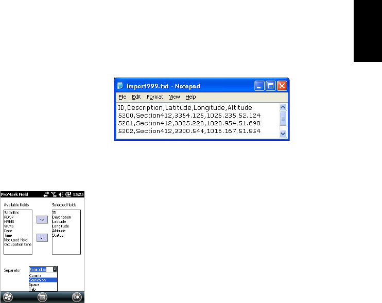 • Tap Menu > Job > Import. ProMark Field lists all the text