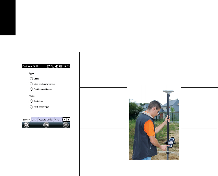 Read the table below to choose the survey type and mode